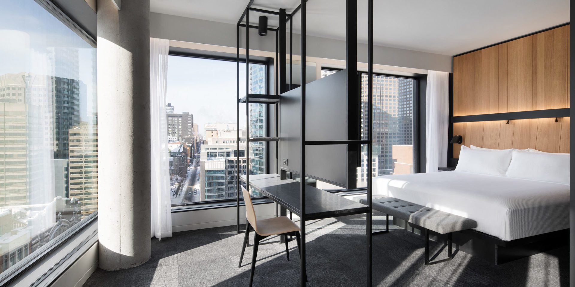 Situé en plein cœur du quartier des affaires et il est également très près du Vieux-Montréal. Tu te trouveras à 4 minutes à pied du métro Places-d’Armes. L'hôtel dispose aussi d’un parking à vélo ainsi que de bornes pour les voitures électriques. Tu pourras aussi profiter de ta soirée pour aller découvrir le restaurant, le bar ou l’activité Montréalaise à deux pas de l’hôtel. Utilisez le code : WORKATION22 lors de votre réservation sur le site de l'hôtelier pour obtenir un rabais.