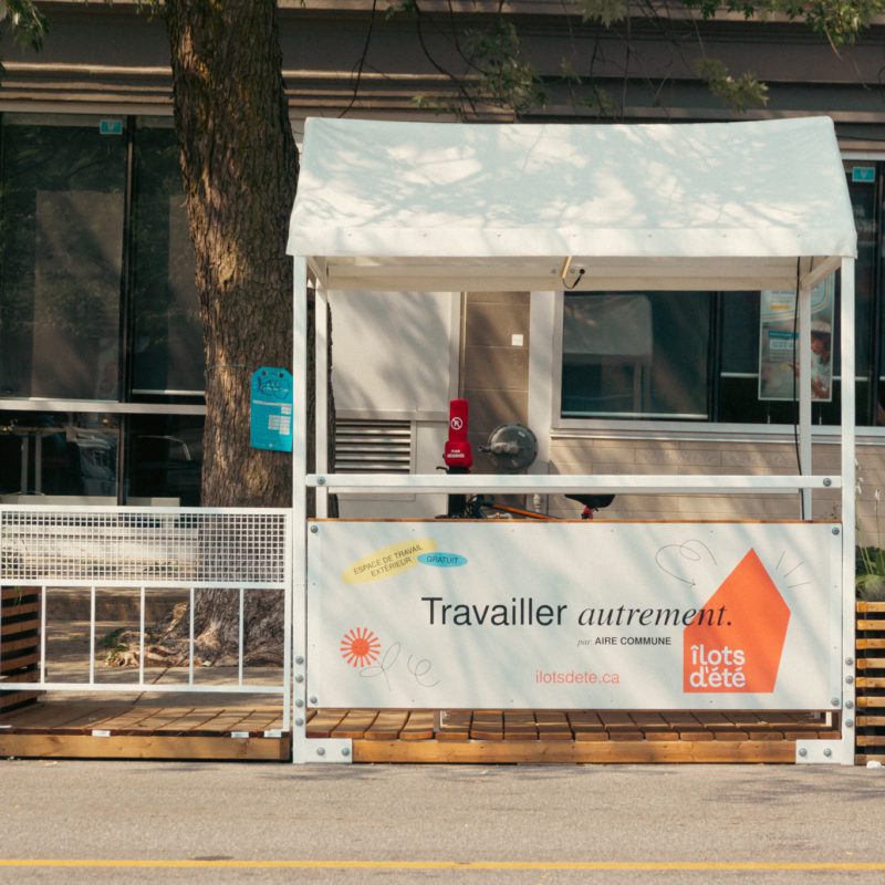 Îlots d’été, an initiative by Aire commune, is rethinking open-air remote work. The goal: to provide accessible and inspiring outdoor work environments right in the heart of the city. In 2025, two new installations will let you work differently in public spaces.