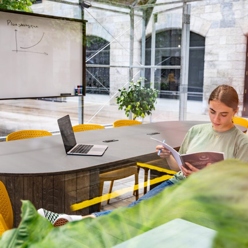Free and open to all, this facility can accommodate up to 8 people and offers full functionality: High-speed WiFi, electricity, air conditioning and a whiteboard for brainstorming sessions.
