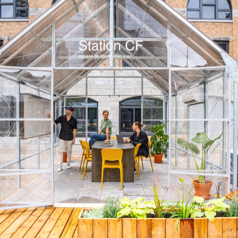 Inaugurée en 2023, la Station CF est un espace de travail gratuit pouvant accueillir jusqu’à 8 personnes et offre des fonctions complètes de Wi-Fi haute vitesse, d'électricité et de climatisation pour des séances de travail d’équipe en plein air.